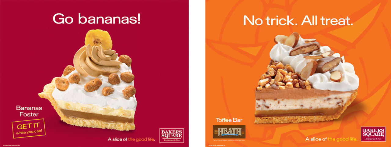 All printed and point-of-purchase materials, including posters, table cards and menu inserts in the restaurants were revamped to reflect the new “Slice of the Good Life” TV campaign, which significantly increased entrée counts as well as pie sales.